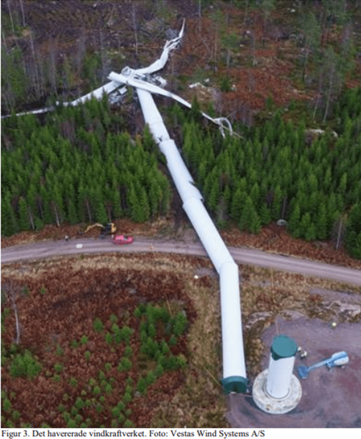 Kuva: Ruotsissa onnettomuuden yhteydessä maastoon levisi 1 000 litraa vaihteistoöljyä, 250 litraa hydrauliikkaöljyä ja noin 600 litraa glykoliseosta. Kuvan lähde: https://shk.se/download/18.2d6f089b18faca29dc819f7a/1698926730927/RO2017_01-Slutrapport-Lemnhult.pdf