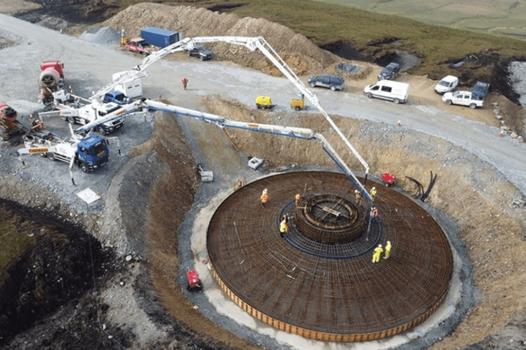 Kuva: Maatuulivoimalan betoni-teräsperustus vie jopa 4500 kuutiometriä betonia. Kuvan lähde: https://www.sttinfo.fi/tiedote/69971540/tuulivoimalan-perustusten-ratkaisematon-ongelma?publisherId=69819944&lang=fi